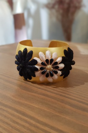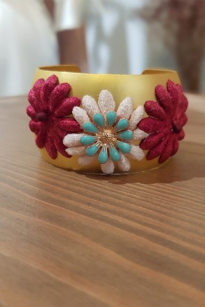 CINTURÓN FORRADO ROJO CON ESTAMPADO DE FLORES BEIGE CON HEBILLA
