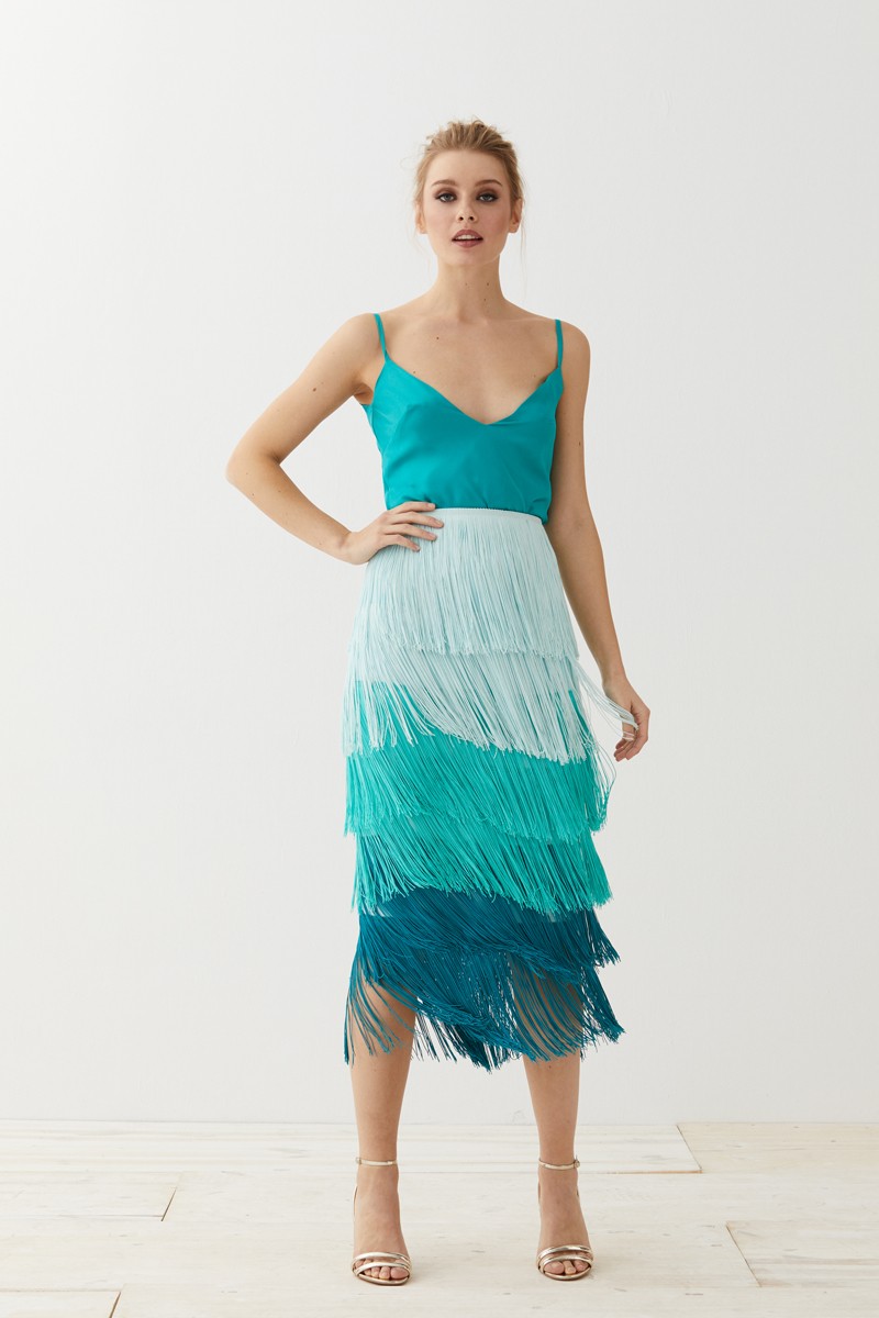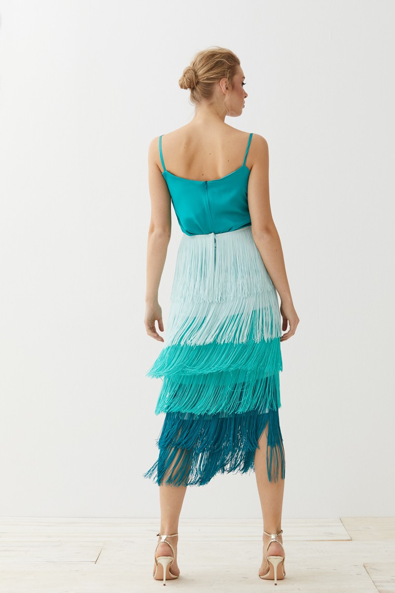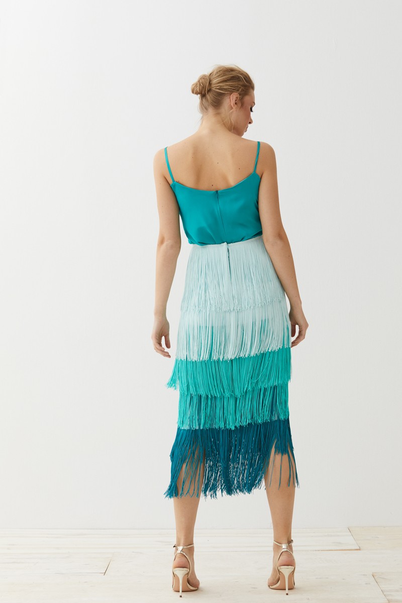 • aquamarine fringed skirt. Ideal set for wedding guests