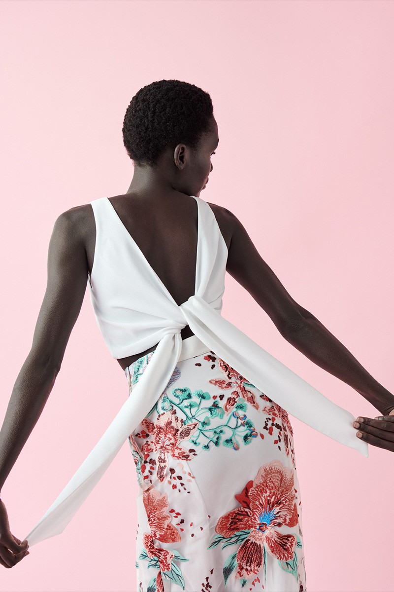 Top crop con amplio escote en la espalda y lazada. Diseño cerrado y sin mangas en la parte delantera. Confeccionado en crepe fino de excelente calidad. (...)