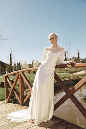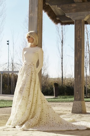 MONO BROCADO FLORES RELIEVE BLANCO CON MANGA ABULLONADA SAN PELAYO