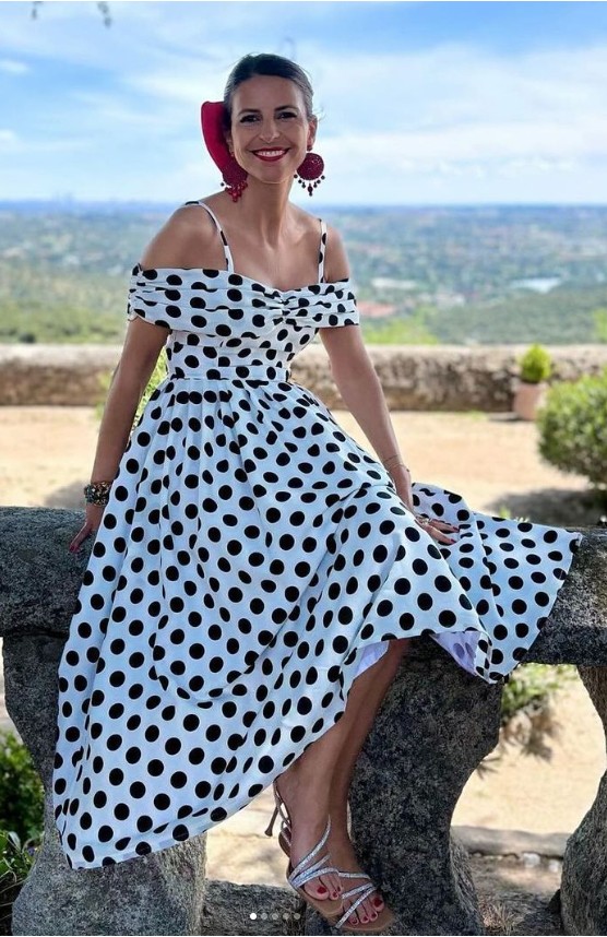 La peridista Helena Condis de boda con mono de lunares El Tablado en (...)