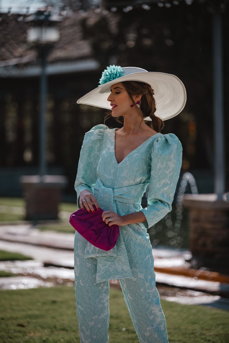invitada-perfecta-con-mono-de-fiesta-de-brocado-aguamarina-invitada-boda-evento-online