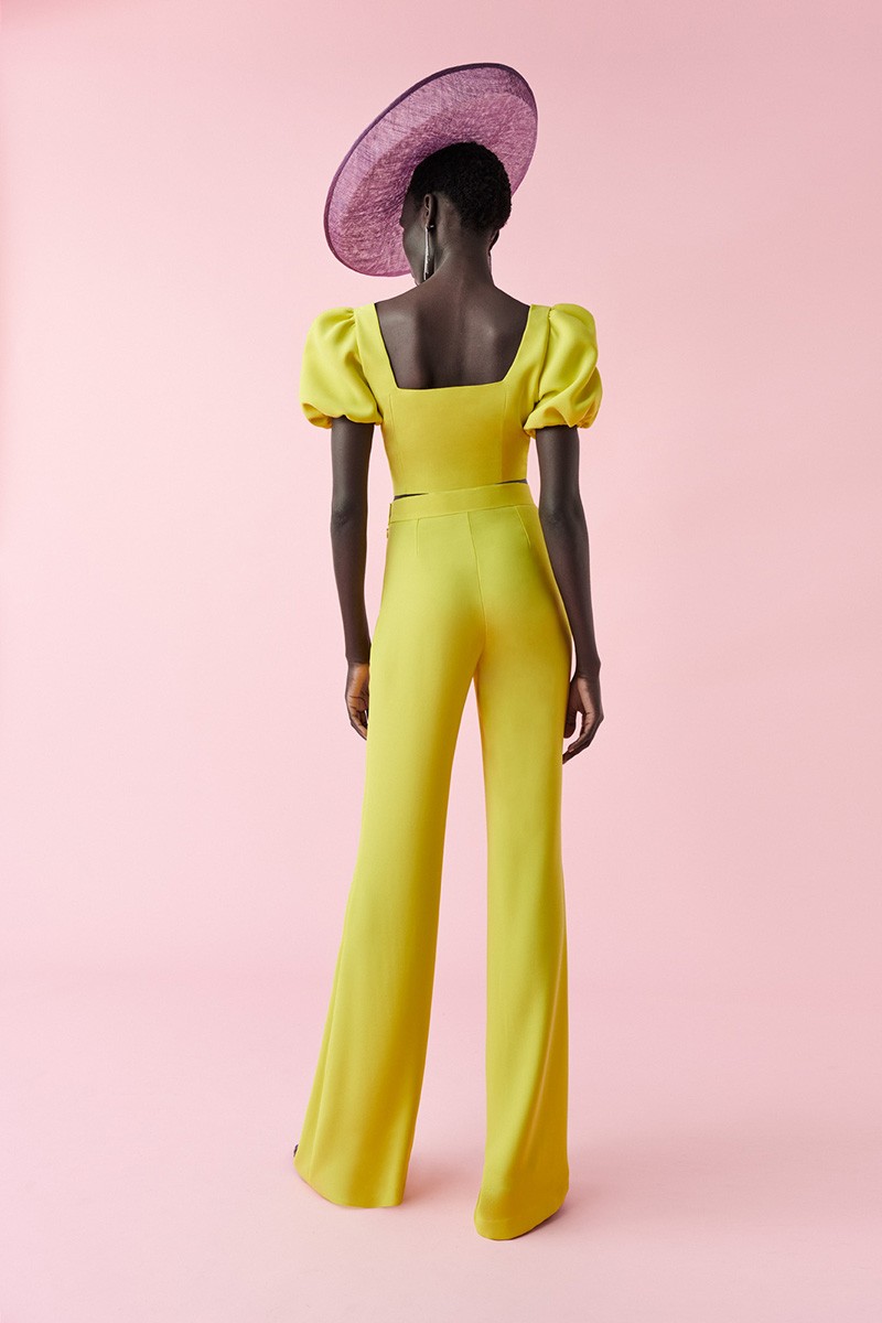Precioso conjunto de dos piezas de palazzo y top confeccionado en crepe de alta calidad de color lima. (...)
