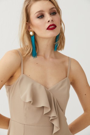 Vestido Camel Midi Volantes Dorian