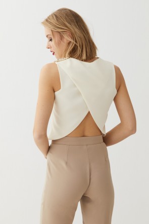 Pantalón Pitillo Aguamarina Dione y Top blanco crudo cruzado