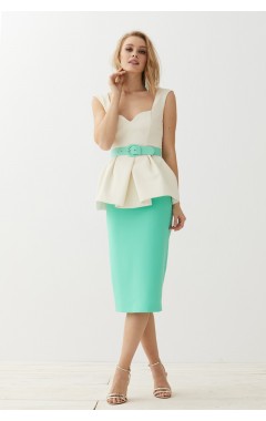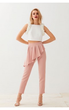 Pantal贸n Pitillo Peplum Rosa Dione con Top Blanco Nicole
