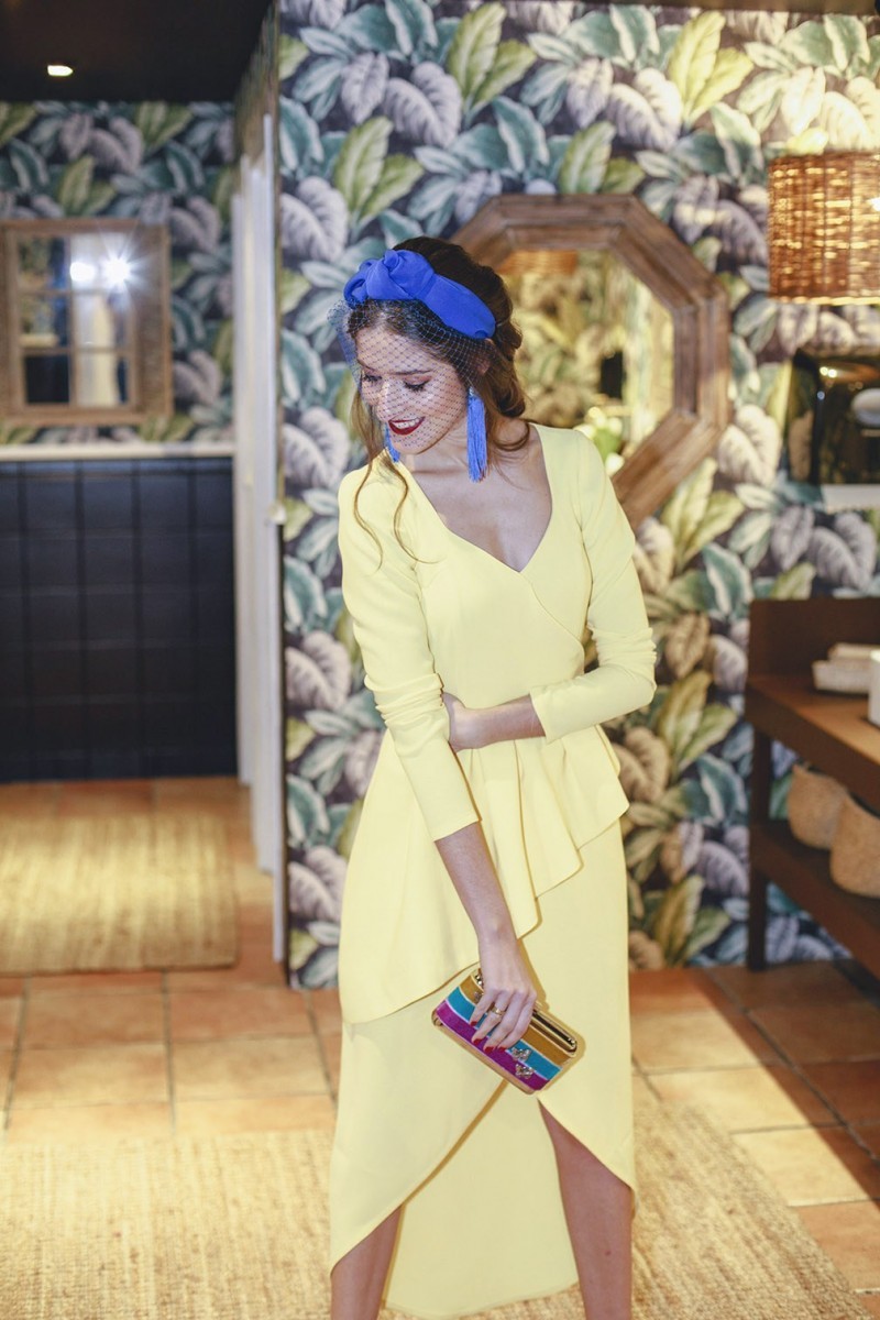 • invitada perfecta con vestido amarillo lima de apparentia con volante en la cintura