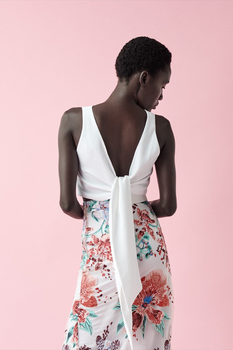 Top crop con amplio escote en la espalda y lazada. Diseño cerrado y sin mangas en la parte delantera. Confeccionado en crepe fino de excelente calidad. (...)
