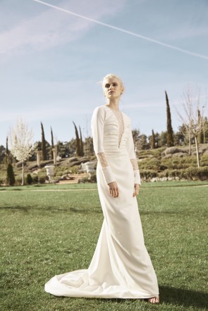 MONO BROCADO FLORES RELIEVE BLANCO CON MANGA ABULLONADA SAN PELAYO